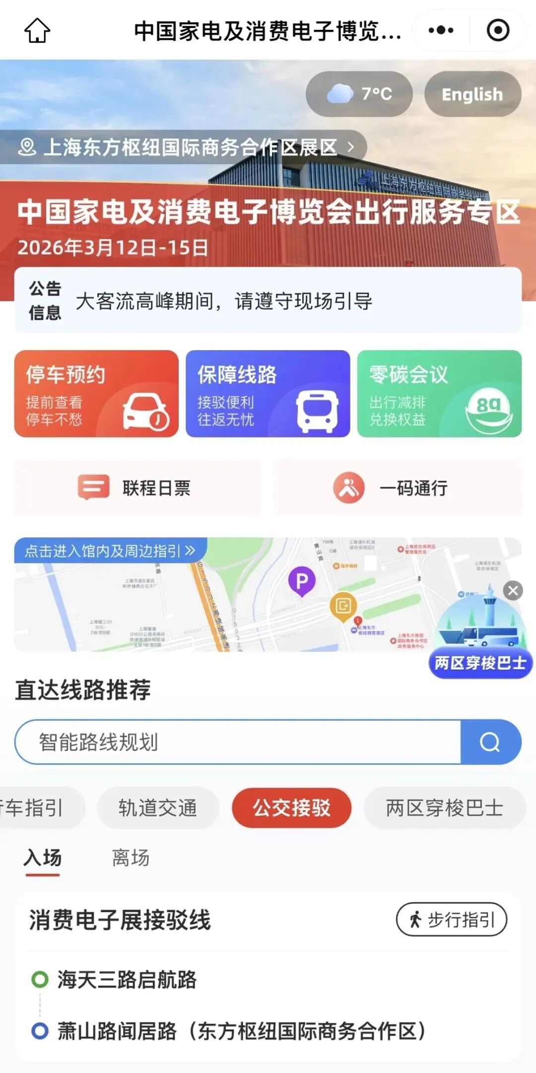 ? 展会期间如遇交通保障措施临时变化,专区顶部公告栏将第一时间更新。