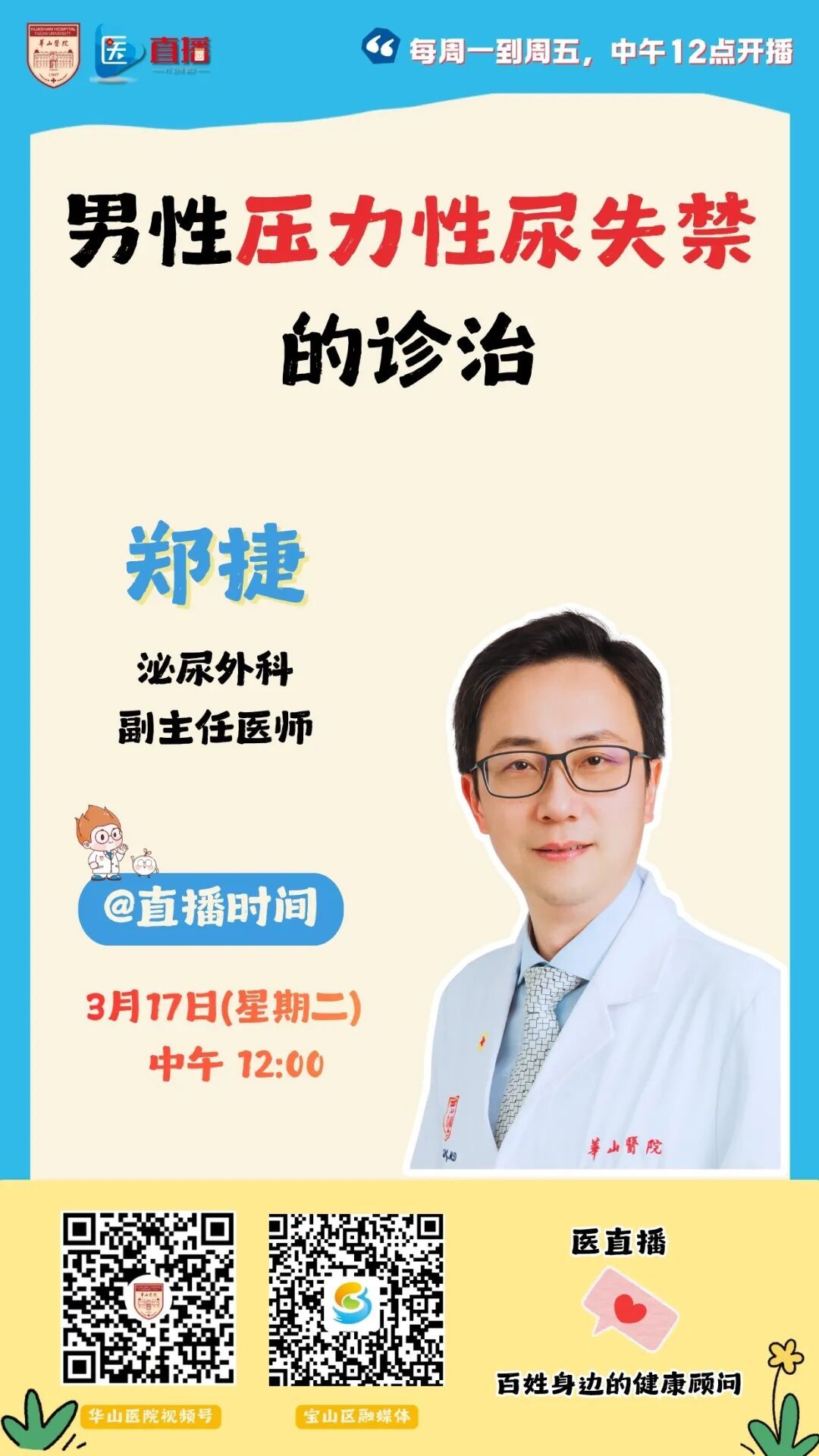 压力型尿失禁如何应对?本期医直播,复旦大学附属华山医院泌尿外科副主任医师郑捷,将详细讲解该类型尿失禁的病因、临床表现、诊断方法及当前主流治疗手段,为患者提供清晰的康复指引。