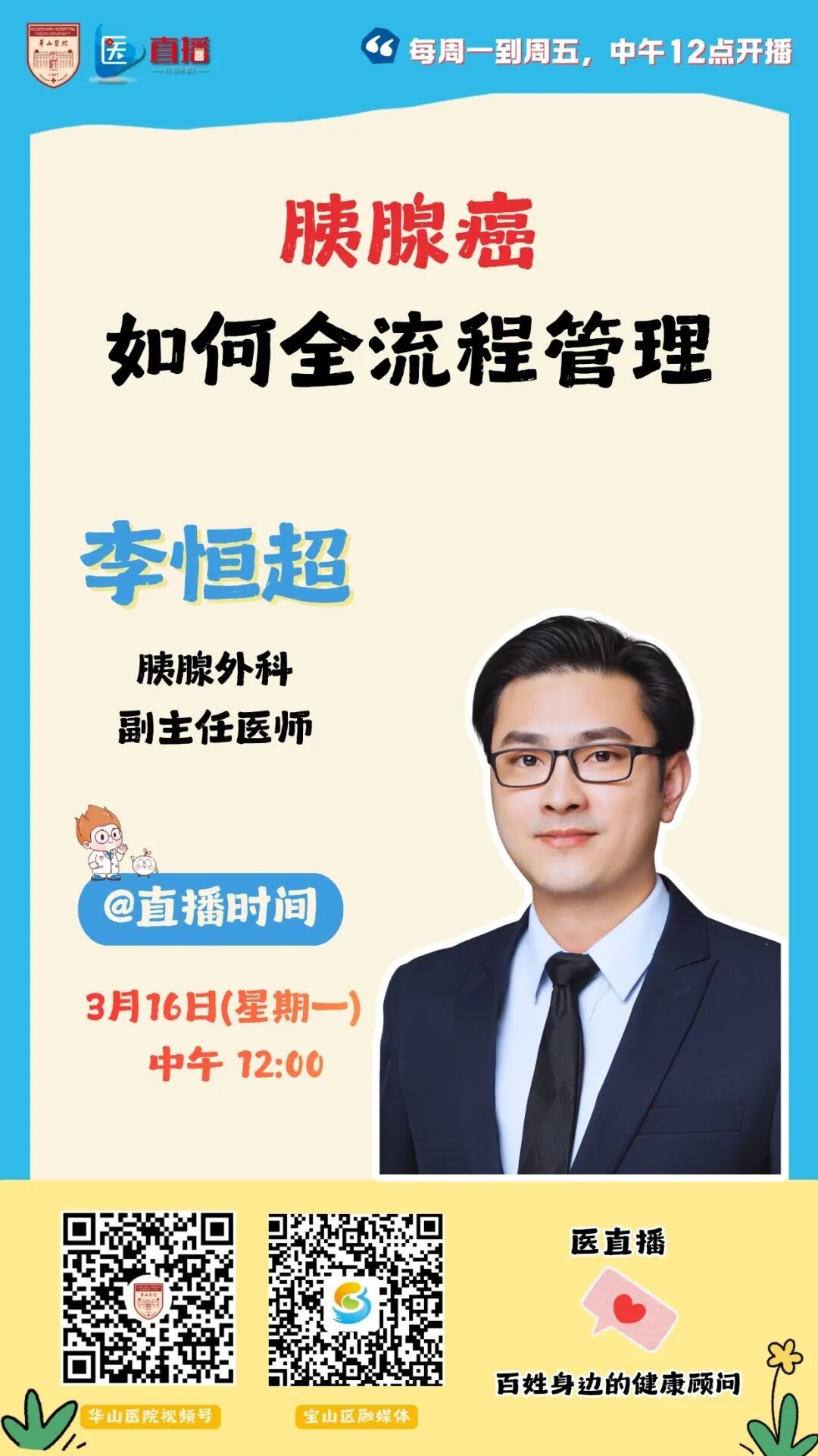胰腺癌早筛难、进展快、预后差,全程管理的核心在于:高危人群早筛、精准分期分型、多学科综合治疗、全程对症支持、长期严密随访。本期医直播,复旦大学附属华山医院副主任医师李恒超,将为大家讲解胰腺癌的防治策略,以及如何实现全周期的规范化管理。