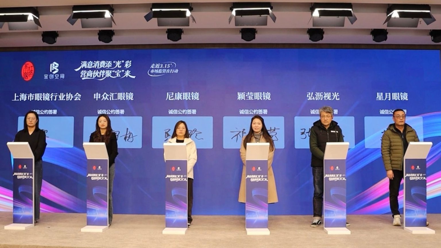 诚信是营商之基、消费之本。活动现场,上海市眼镜行业协会与申众汇眼镜、尼康眼镜、颖莹眼镜、弘沥视光、星月眼镜等辖区商户代表共同签署眼镜行业诚信公约,以庄严承诺践行诚信经营理念,守护消费者合法权益,营造公平公正、放心安心的消费环境。