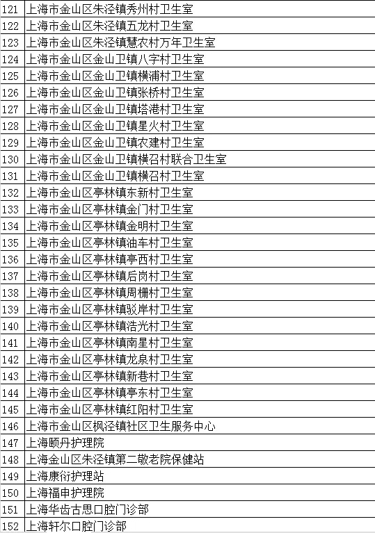 医疗机构名单