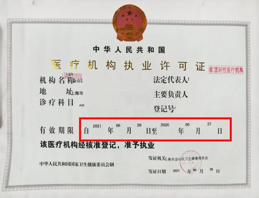 2026年度金山区《医疗机构执业许可证》延续(换证)工作现已启动,请各医疗机构密切关注《医疗机构执业许可证》有效期,及时办理延续手续,切勿超期!