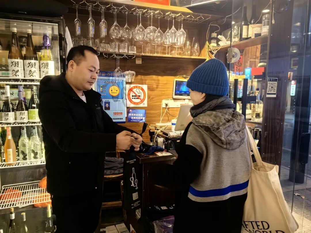 两家店的店内都堆得满满当当。但无论什么时候经过,门前都干干净净。来买菜的人很多,其中不乏有人在挑菜时顺手剥下几片不满意的菜叶。得益于菜店的勤打扫,人行道上总是清清爽爽。俞阿姨还告诉记者,她亲眼看到菜店老板分装草莓时,每一颗都仔细看过,轻轻装进盒子,买到的水果从来不会下面藏着坏的。而在酒行,蓝哥蓝姐从不故意占用人行道,也不为卖高价酒或者多卖几瓶酒而推销,他们努力让每一个来客都对店里的酒和南昌路上的风景满意。