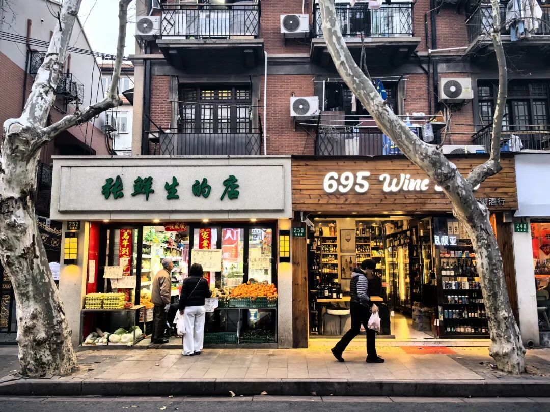 南昌路上,有两家店并肩而立——252号是“张鲜生的菜店”,250号是“695 Wine Shop 三秋树酒行”,一家卖菜,一家卖酒。一个管着眼前的饱腹,一个盛着闹市中的松弛。
