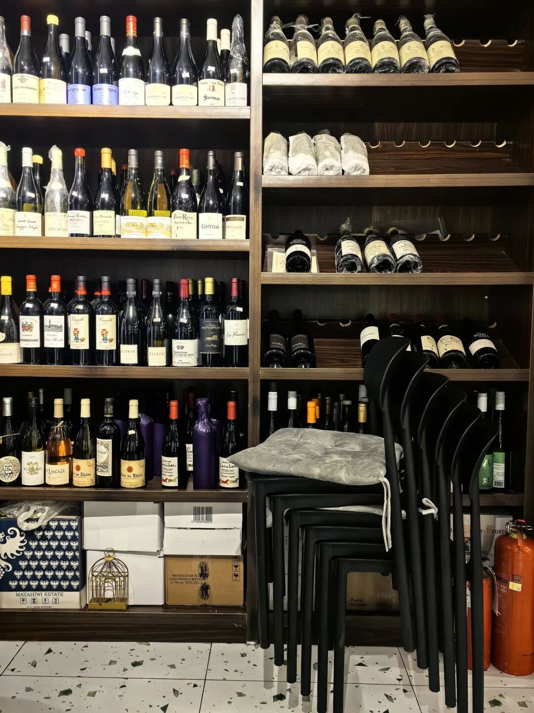 隔壁的酒行,则是另一种光景。店里没有员工,老板是一对来自福建漳州的夫妻,客人叫他们蓝哥、蓝姐,熟悉他们的居民喊他们小蓝。店面不大,三面墙都是顶天立地的酒柜,酒的种类很多,主打葡萄酒。白天来店喝酒的客人少,椅子摞在一起,堆在店里。到了傍晚,店里热闹起来,客人们陆续赶来,拉开椅子,三三两两坐在一起,边喝边聊。有客人聊得久了,肚子饿了,叫来披萨,然后继续,就像在自己家一样。