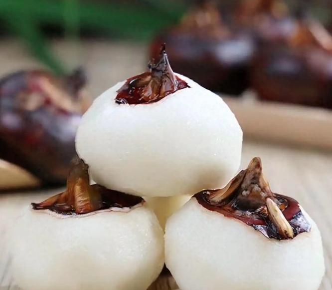 荸荠扁圆,外皮紫红或紫黑,肉质洁白、脆嫩多汁,自古有“地下雪梨”之称。其吃法多样,生吃、煮食皆可。新鲜荸荠洗净剥皮,直接吃,果肉清脆、汁水充盈。我更偏爱连皮带肉吃,不仅味甜多汁,嚼到最后还会留有一小团渣滓,得慢慢地咽下去,那种感觉只有吃过的人才知道。正如周作人说:“荸荠自然最好是生吃……有特殊的质朴与新鲜的味道。”