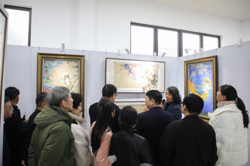 本次展览集中呈现孟刚近年创作的六大系列数十幅精品画作,全面展现其艺术脉络与创作理念。大美敦煌系列作品描绘华夏丹青千古绝唱、世界艺坛不朽传奇;国风古韵系列作品落笔尽显中国古代女性的含蓄温婉与东方意境之美,笔下高士尽显古代文人隐逸淡泊、意境超然之风;灵修自然系列作品丘壑林泉、屋舍烟峦,虚实相生、水墨空灵,“只此青绿” 再现中国色彩经典,惊艳时光。