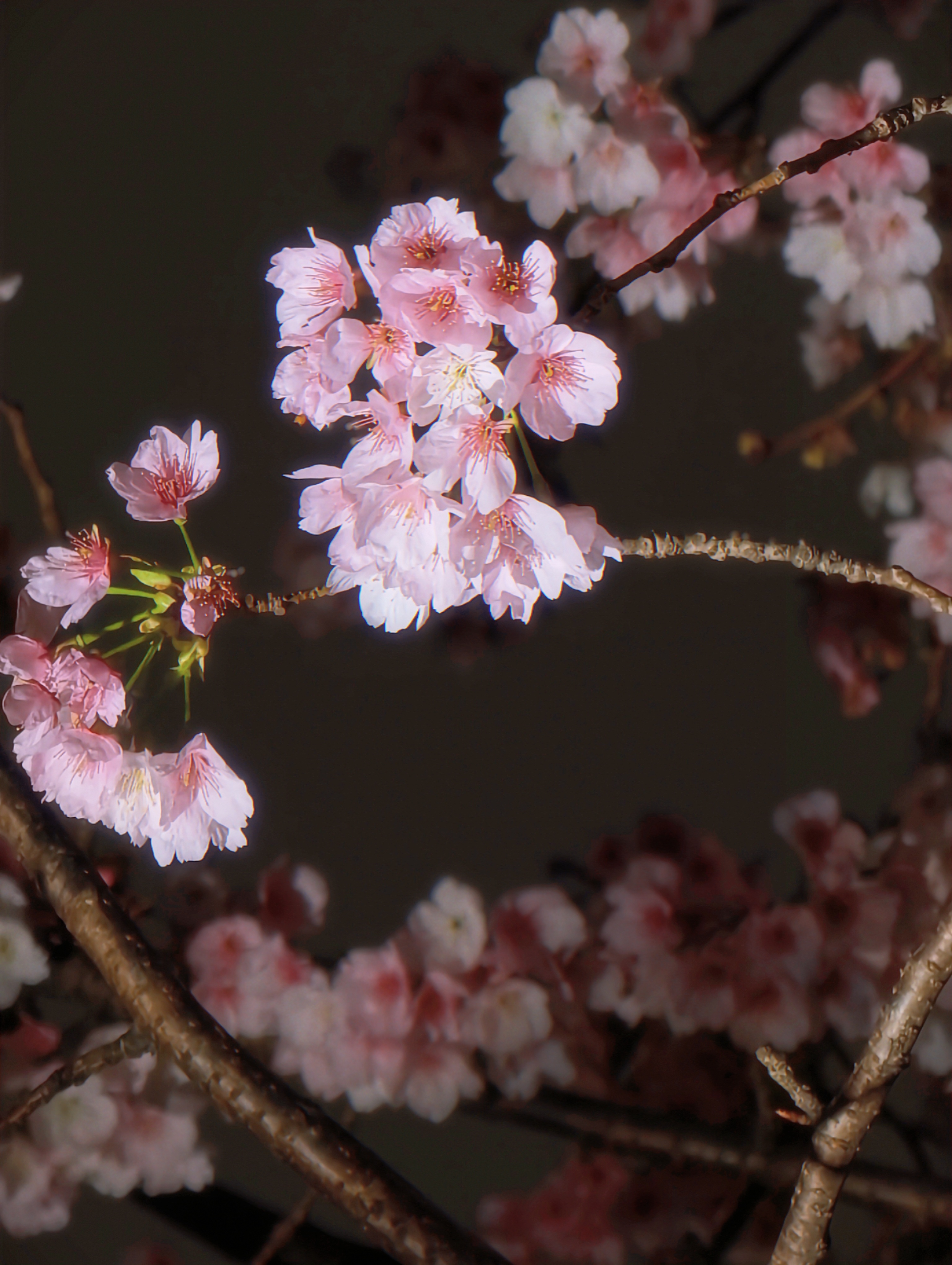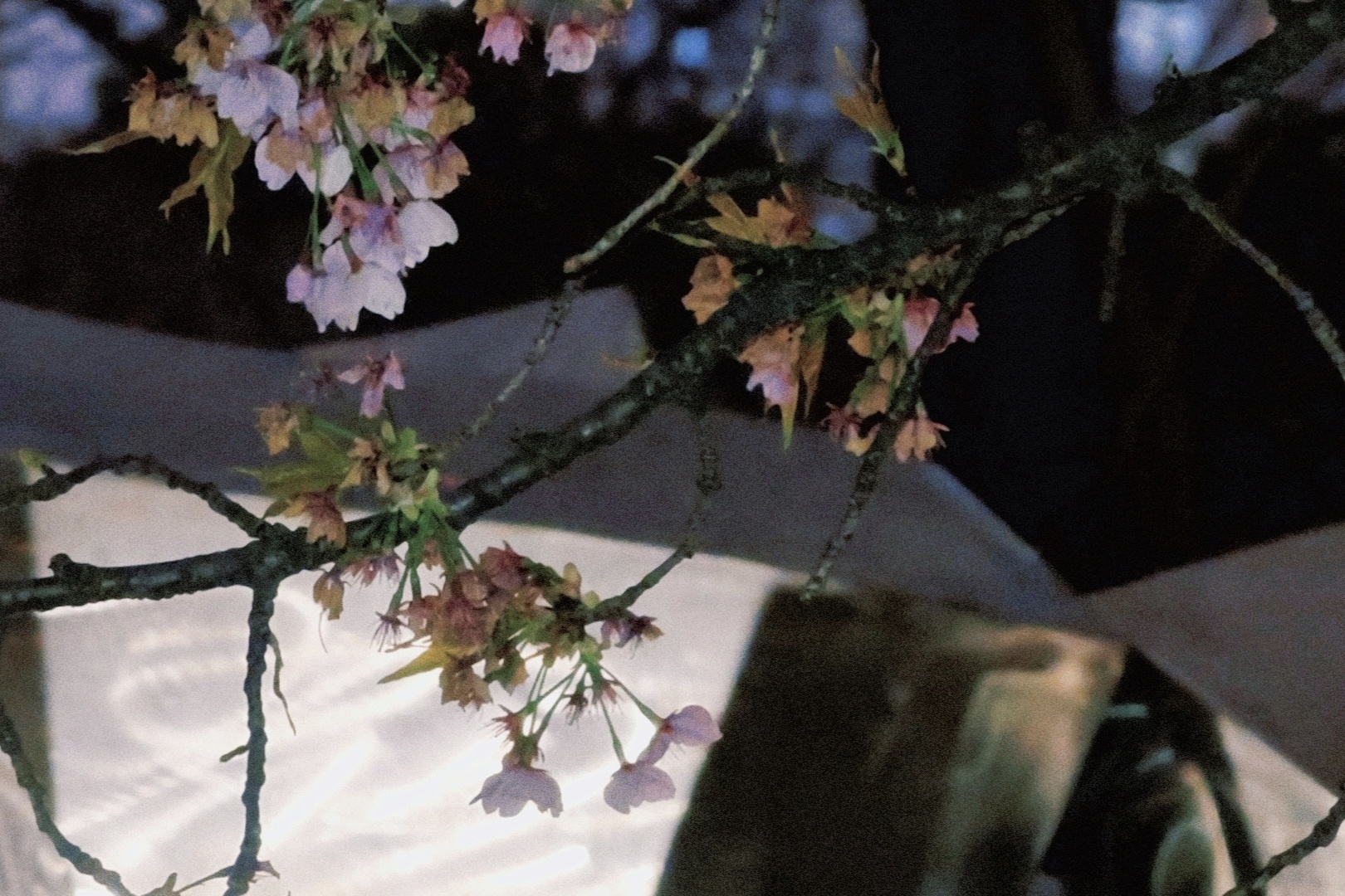 如今,花期进入尾声的此刻,有人悄悄解锁了另一种打开方式:夜樱。