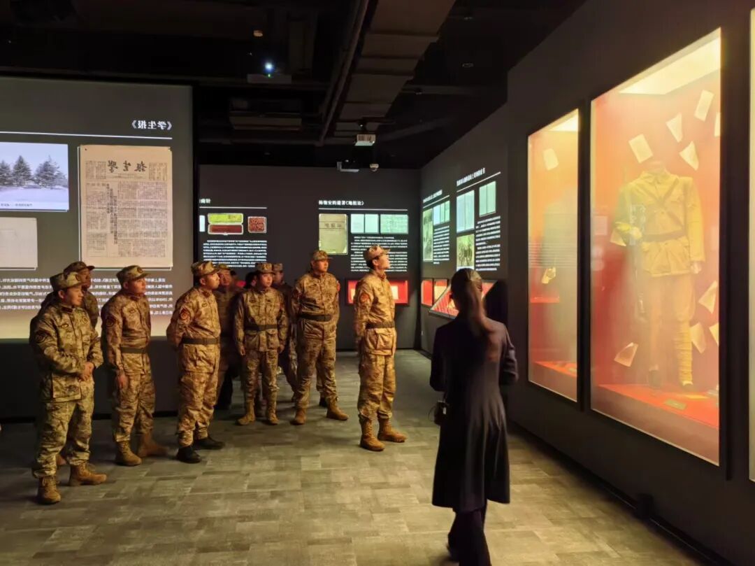 活动中,队员们首先走进陵园多媒体中心,这里以现代科技为载体,通过影像播放、场景复原、图文展示等多种形式,生动再现了革命先烈们为民族独立、人民解放抛头颅洒热血的峥嵘岁月,生动宣讲了英烈们坚贞不屈、大义凛然的英雄事迹。大家驻足凝视、认真聆听,不时交流感悟,深切体会到作为新时代民兵的责任与担当。
