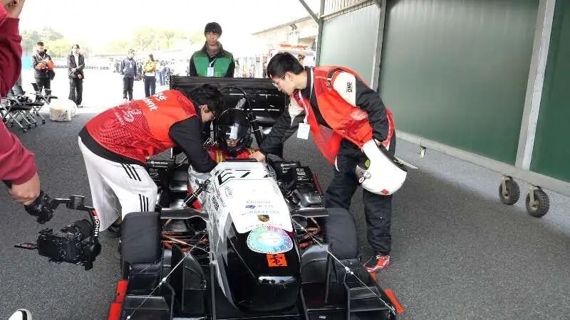 正是因为都来自学生们的自主设计,安全成为了考察的一大重点。和F1赛事仅仅以速度说话不同,在大学生方程式赛车比拼中,静态展示、动态测试及技术交流都是十分重要的部分。在车检区,多位裁判正全神贯注地核对车辆信息,并严格进行车手紧急逃生的响应测试。