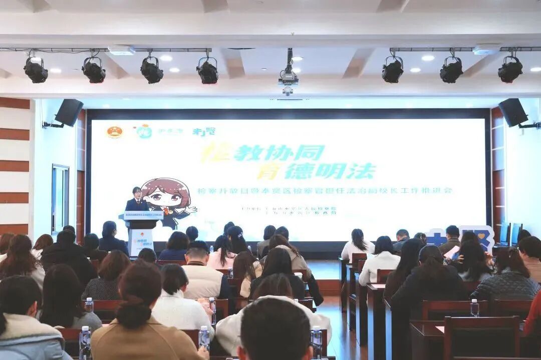 近日,奉贤区检察院、区教育局联合举办“检教协同 育德明法”检察开放日活动暨奉贤区检察官担任法治副校长工作推进会。活动现场,检察官分享法治副校长实职化履职的生动故事。同时,奉贤区检察院与区教育局共同签署《奉贤区检察官担任法治副校长实职化履职实施办法》。