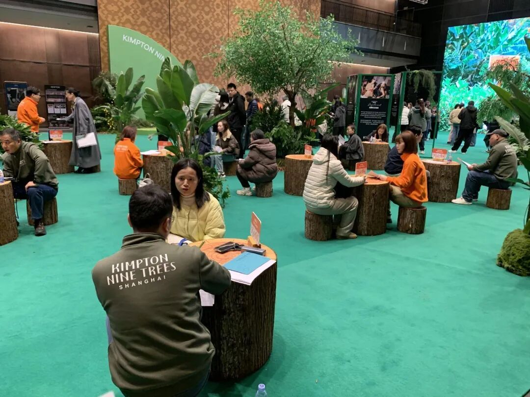 3月21日,位于奉贤新城的上海九棵树艺术中心金普顿酒店举办首次公开招聘会。绿意盎然的会场布置、树桩造型的桌椅……这场别开生面的招聘活动不仅吸引了众多酒店行业人才,同时也让外界首次近距离感知到这家即将亮相的酒店所承载的品牌理念与生活美学。