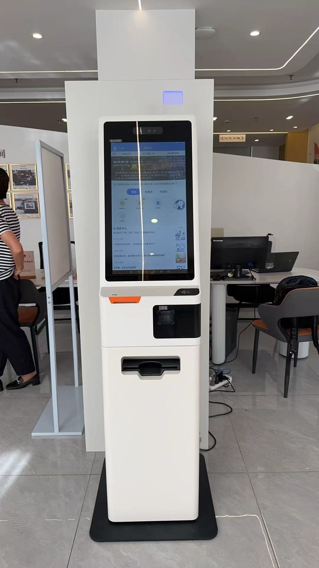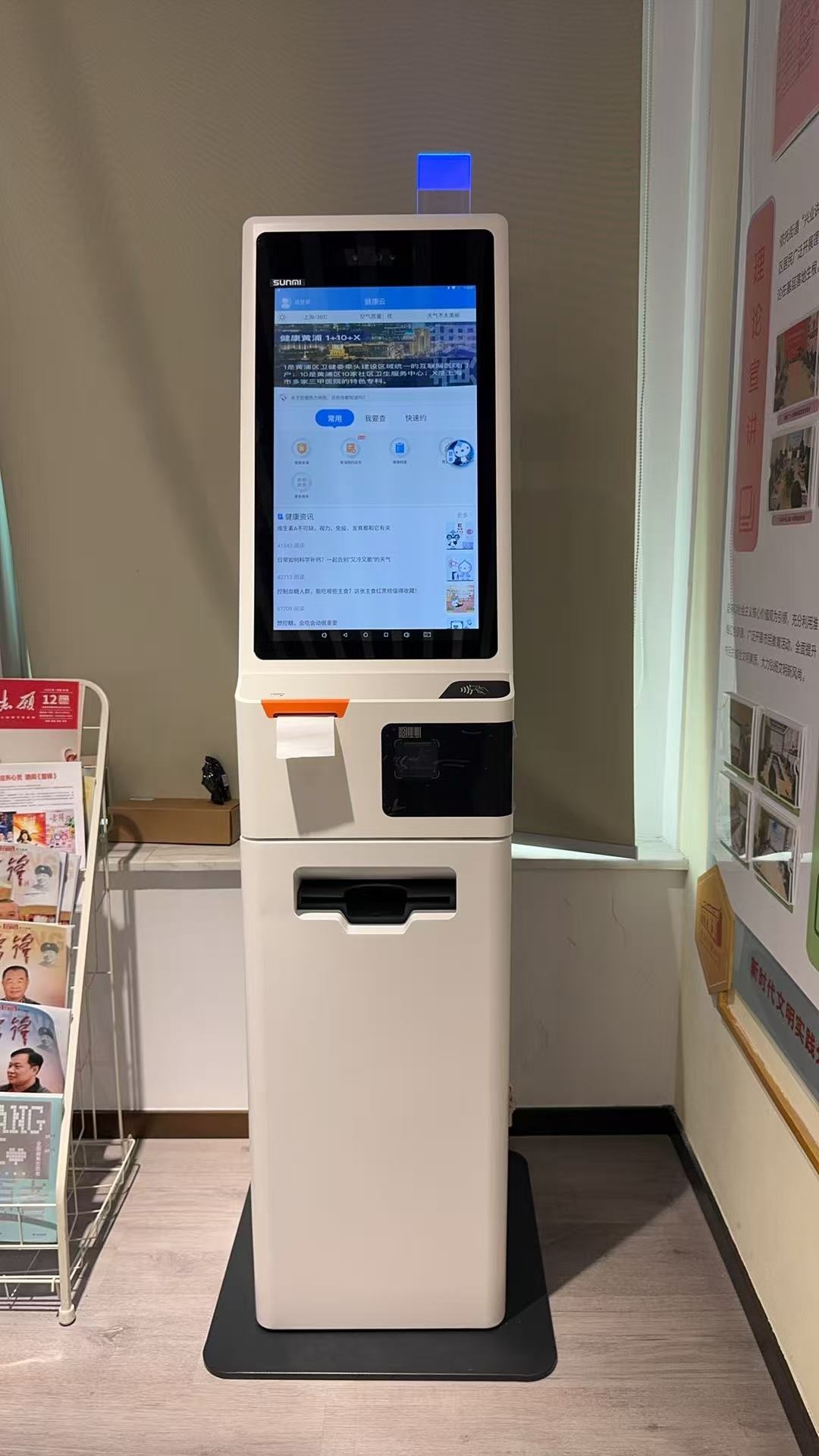 为了满足不同人群的各类实际诉求,尤其是为方便不熟悉手机操作的老年朋友,黄浦区还增设了四个“无接触诊疗服务站点”。您可以像使用银行ATM机一样,在志愿者的帮助下,在这些智能设备上自主完成在线复诊、开方、支付和选择配送。