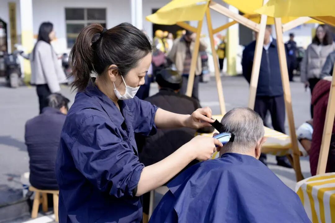 中心以“网格连心、服务为先”为工作导向,推动优质资源下沉、治理力量整合,着力持续构建共建共治共享的基层治理新格局。启用当日恰逢农历二月初二“龙抬头”,“吾爱吾村·暖新同行”便民服务集市同步热闹开启。宝山区中西医结合医院、罗泾社区卫生服务中心、消防救援站、电信局、平安办、社区受理中心等单位,以及磊宏科技、慧竹装潢等本土商户齐聚现场,为老百姓带来健康义诊、政策咨询、反诈宣传、磨剪刀、免费理发等贴心服务。现场人气高涨,村民纷纷点赞:“龙抬头免费理发,真是太方便、太贴心了!”