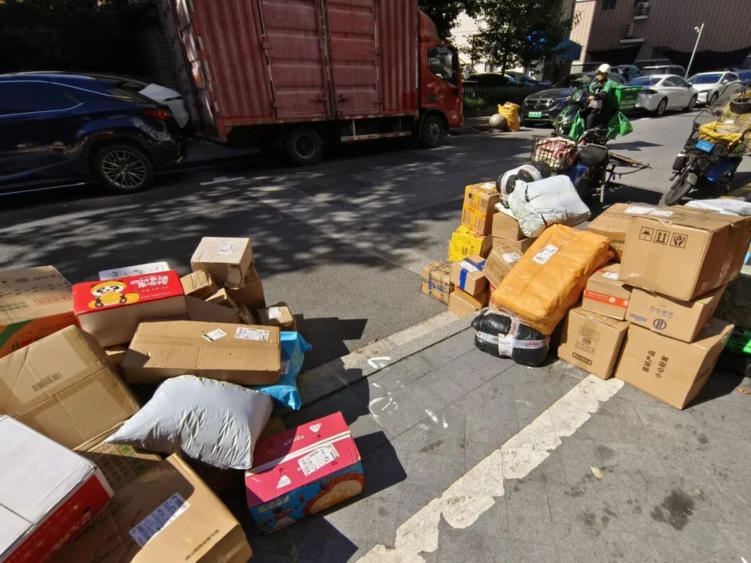 2025年10月七彩里附近快递占道(尚未设置临时堆放点)