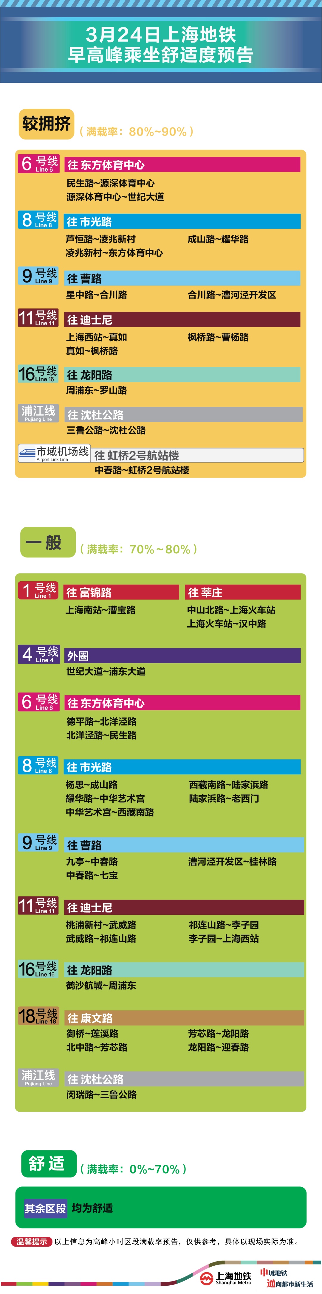 为提升上海地铁早高峰期间出行服务水平,提升乘客乘坐体验,上海地铁向乘客提供乘坐舒适度预告,方便乘客提