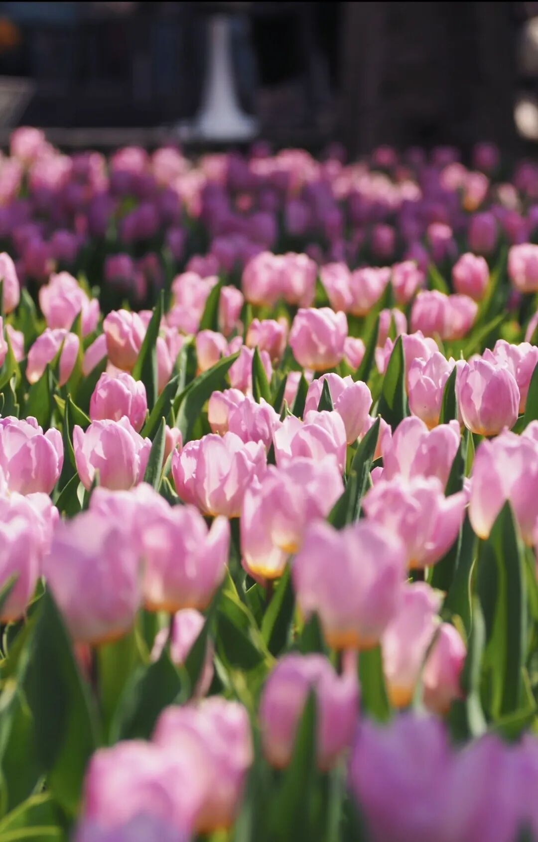 步入静安雕塑公园,郁金香则迎来盛花期。红橙粉紫交织成片,花田烂漫满目。待到四月,海棠、碧桃又将次第开放,把整座公园晕染成温柔的浅粉与绯红。