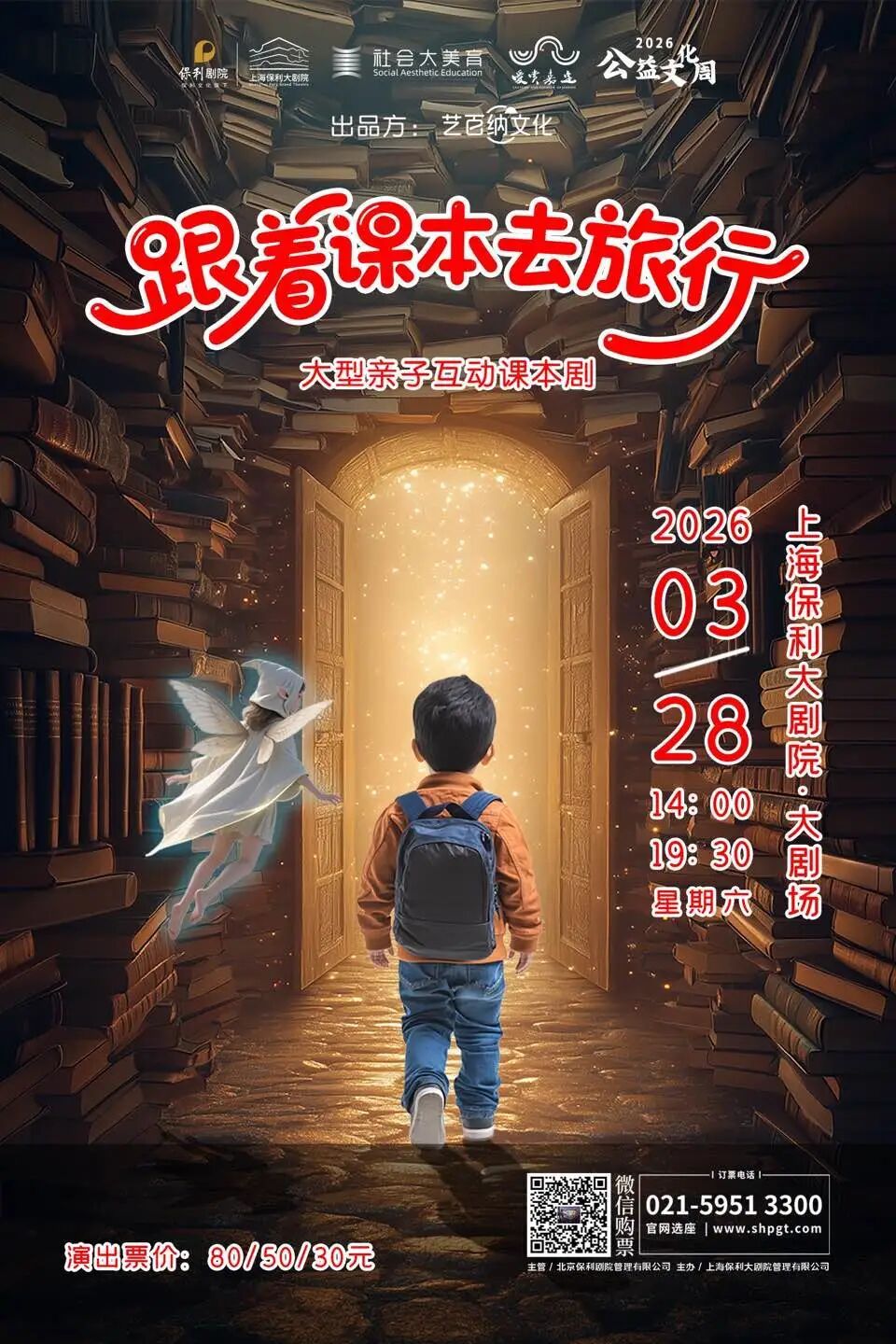 2026嘉定区“公益文化周”系列演出之一,大型亲子互动课本剧《跟着课本去旅行》精选了语文、历史课本中的重要篇章,以舞台互动的形式,让孩子们身临其境地踏上一场跨越千年的文明之旅,让历史从文字中跃出,成为可触摸的鲜活记忆。 2026必打卡亲子剧·爆款研学IP改编 寓教于乐·全家互动·全国巡演·场场爆满 《跟着课本去旅行》 耗时两年匠心打磨的 沉浸式课本剧《跟着课本去旅行》重磅来袭 3D多媒体炸开历史迷雾 机械悬浮布景掀翻舞台边界 小学语文课本里的故事全“活”了 邀你共赴“读万卷书,行万里路”的时空盛宴 让知识与家国情怀 在尖叫与感动中刻进成长DNA 大秦帝国:触摸历史的温度 兵马俑的陶土指尖碰响现代阳光 黄土下的冷兵器骤然苏醒 商鞅变法的竹简墨香扑面而来 阿房宫地砖还留着匠人的体温 长城砖缝里藏着戍卒的乡愁 “书同文、车同轨”的伟业 在秦弩弓弦的震颤、驰道车辙的延伸中 变成有呼吸、有心跳的传奇 震撼直击心底 盛唐长安:诗酒里的盛世长歌 朱雀大街的月光漫过鎏金酒樽 盛唐烟火从史书里溢出来 胡商驼铃摇碎西市黄昏 乐师拨弦惊起含元殿飞檐 酒肆墙上李白的题诗还带着酒香 “开元盛世”不再是课本名词 而是胡旋舞锦袖翻飞的惊艳 曲江边杏园宴饮的欢腾 醉倒千年的盛世风华 在剧场里具象成可感的美好 圆明园废墟:灰烬中的文明之痛 残柱青苔吻过165年风雨 历史的褶皱里渗出滚烫泪滴 西洋楼喷泉池底沉睡着未完工的榫卯 海晏堂残垣嵌着未刻完的牡丹 长春园废墟下埋着《四库全书》的残卷 1860年的文明之痛 在断壁龙纹、瓦砾瓷片中化作深刻印记 让孩子在震撼中懂得 铭记伤痛,是为了更好地守护文明 璀璨的明珠:血脉里的家国回响 紫金花绽裂百年的霜寒 米字旗在晚风里收起褶皱的哀叹 九龙的涛声拍打着归家的舷窗 维多利亚港的灯火连成温暖的项链 1997年的钟声撞碎殖民的阴霾 五星红旗升起时,每缕风都带着期盼 让孩子在欢呼中懂得血脉相连, 是永远不变的根与岸 家国暖流奔涌全场 日月潭:两岸同根的归心守望 日月潭漾着邵族的歌谣 独木舟划过千年的碧波轻摇 阿里山的云海漫过海峡的远眺 老茶树上挂着祖辈的乡愁未了 一脉相承的炎黄血脉从未断掉 隔海的呼唤里藏着归家的心跳 让孩子在茶香里懂得 两岸同根,是终将团圆的美好 艺术顾问孔德辛(《孔子》《昭君出塞》金牌编导)坐镇把关,编剧郭和强、总编导刘伟波联手打磨剧本,舞蹈编导刘芷竹、作曲崔春光、舞美设计顾珺等业内顶流集结。从剧本考据到舞美搭建,从服装刺绣到道具纹路,每一处细节都藏着匠心,只为给全家呈现一场“既有质感又有温度”的文化盛宴。 《跟着课本去旅行》 演出时间 2026年3月28日(周六) 14:00/19:30 演出时长 70分钟(无中场休息) 演出地点 上海保利大剧院·大剧场 演出票价 80/50/30元 —扫码购票— —票务政策— 1.会员可享常规会员折扣。 2.本场演出不限儿童身高, 所有观众凭票入场