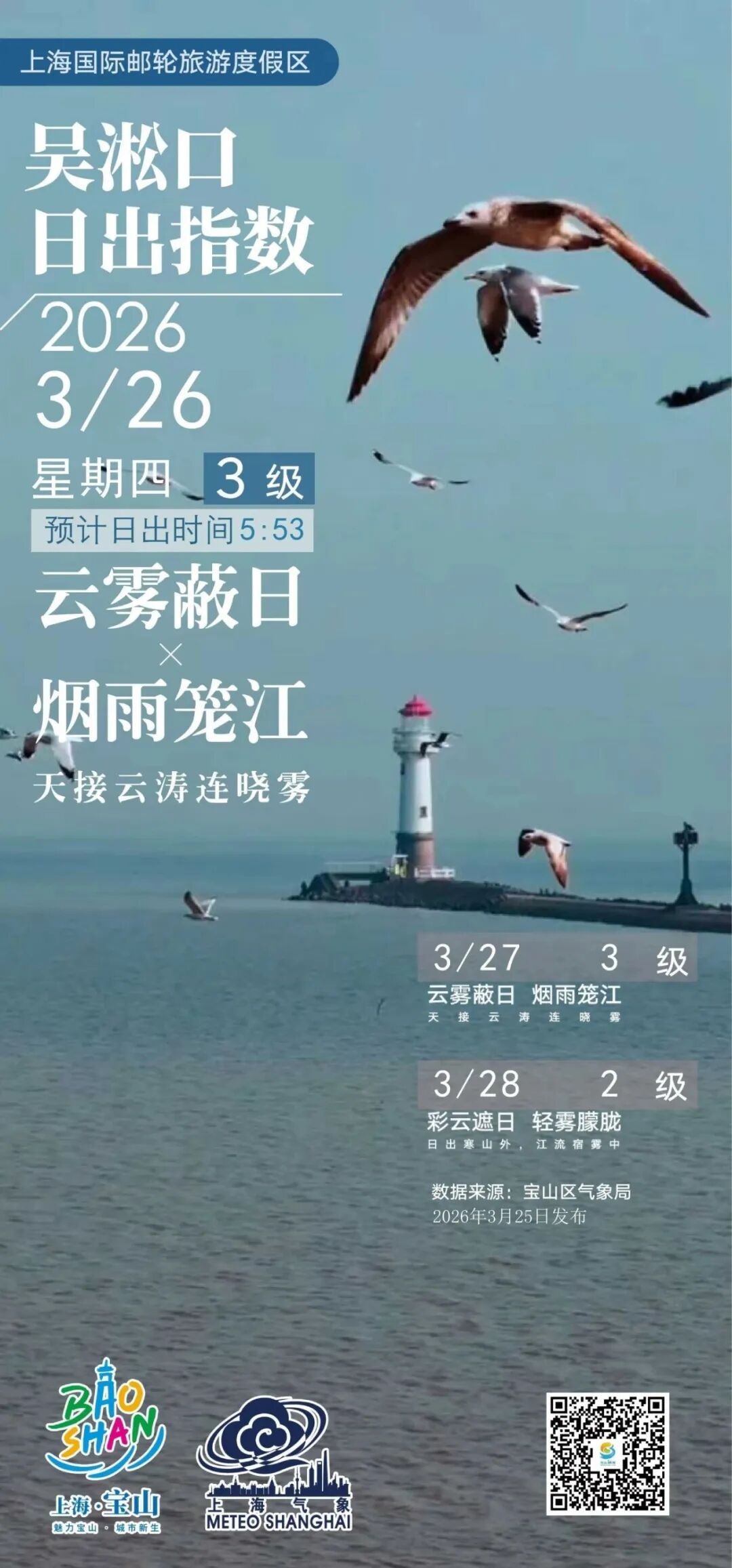 【吴淞口日出指数】3月26日3级 云雾蔽日×烟雨笼江