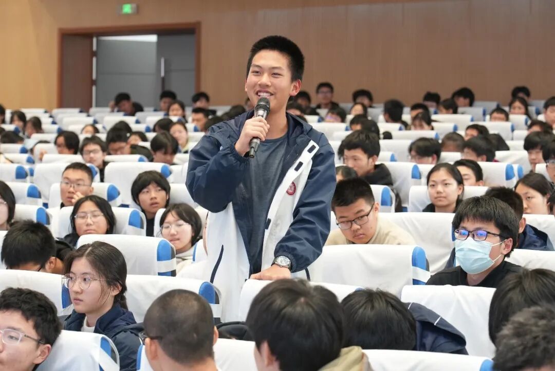 上海市科协、松江区科协、松江区教育局等相关单位领导出席活动。上外云间中学校长刘晓兵在致辞中表示,科技是国之利器,教育是民族之基,学校致力于学术性研究型中学的建设,希望在大师们的引领下,在学生心中种下科学的种子。