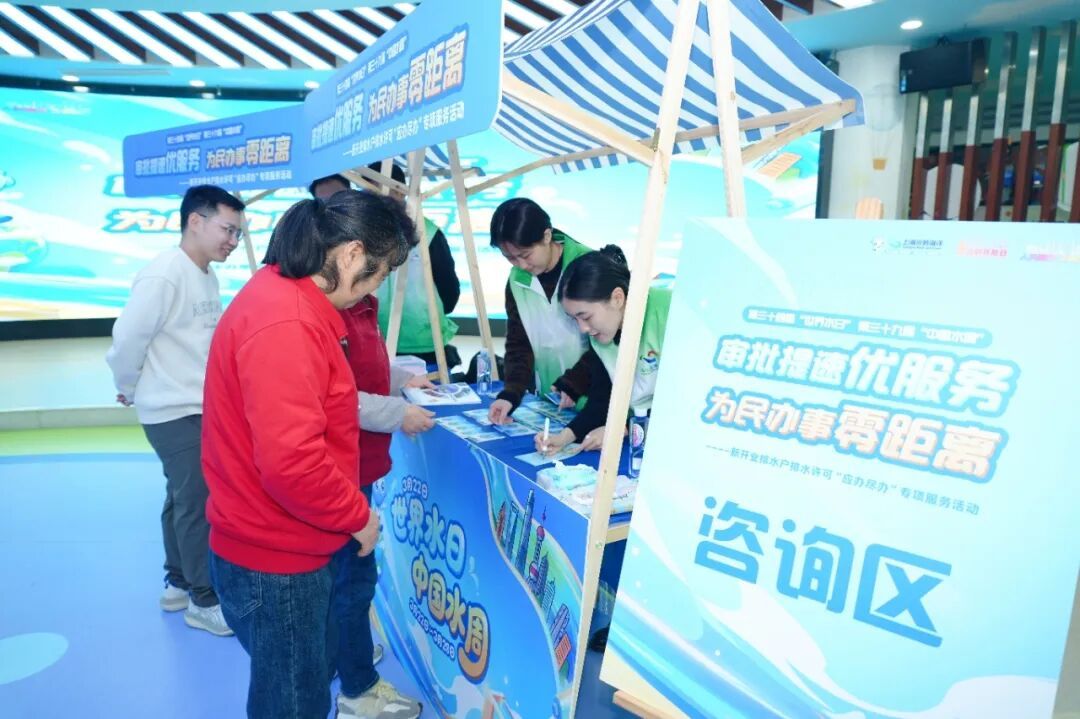 为持续巩固排水许可办证管理工作成效,加强全社会规范排水行为意识,在今年世界水日宣传活动期间,上海市水务局行政服务中心会同全市各区水务部门,以“审批提速优服务,为民办事零距离”为主题,在全市16个区同步开展排水许可专项宣传服务活动。本次活动采取“市局牵头、主场引领、分区联动、全市覆盖”的活动模式,以杨浦区和浦东新区两个主场活动为示范,14个区联动同步发力,把便民利企的政务服务送到商户家门口,全力推进新开业排水户排水许可“应办尽办”。