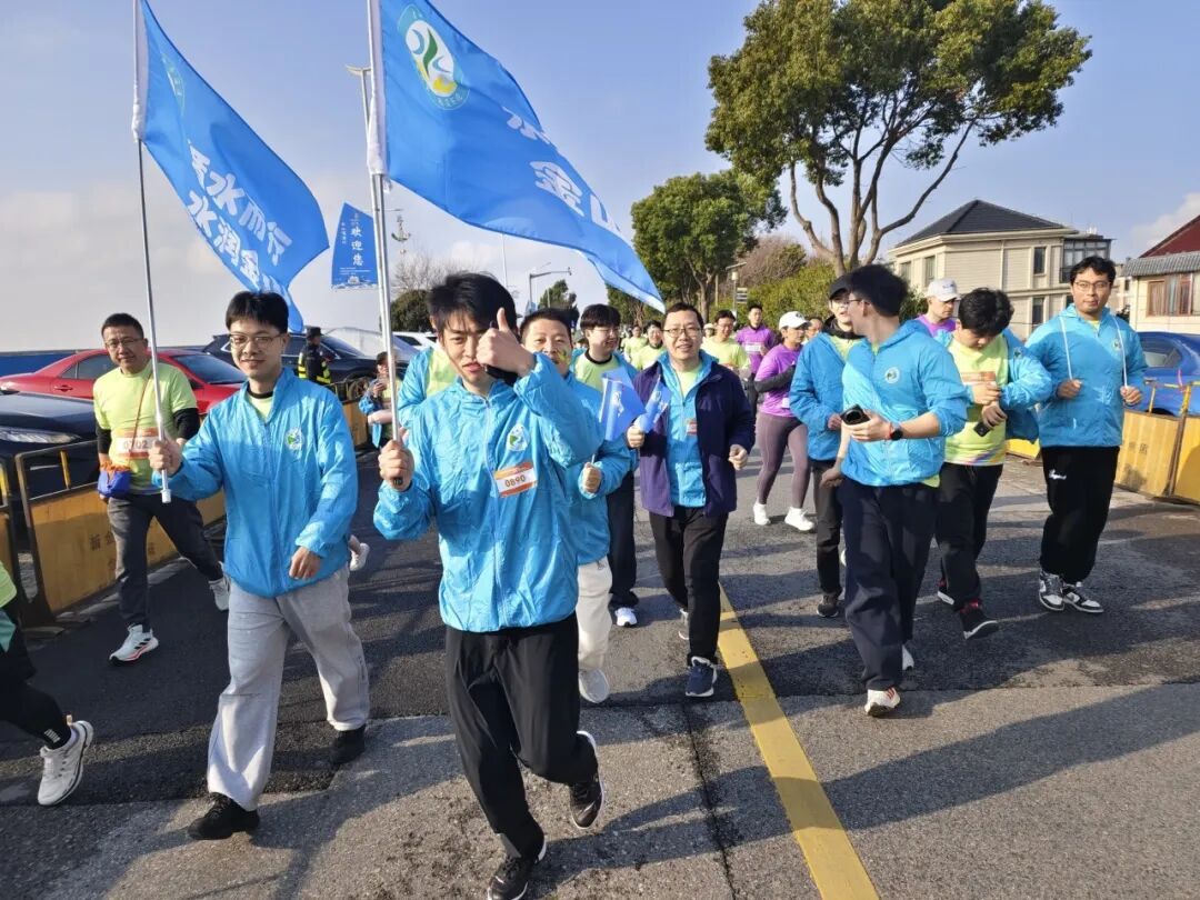 3月21日,“日出金山·龙泉入海”欢乐跑活力开赛。金山区水务局的“河小清”志愿者与2300余名跑者齐聚,迎着湾区朝阳,用奔跑串联起金山嘴渔村、沪杭公路与壮阔海景。