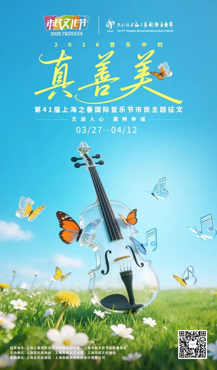 2026年“音乐中的真善美”市民主题征文将与本届音乐节同期举办。诚邀您以文字定格乐韵,以心声呼应时代,用笔触传递温暖而有力的时代强音。