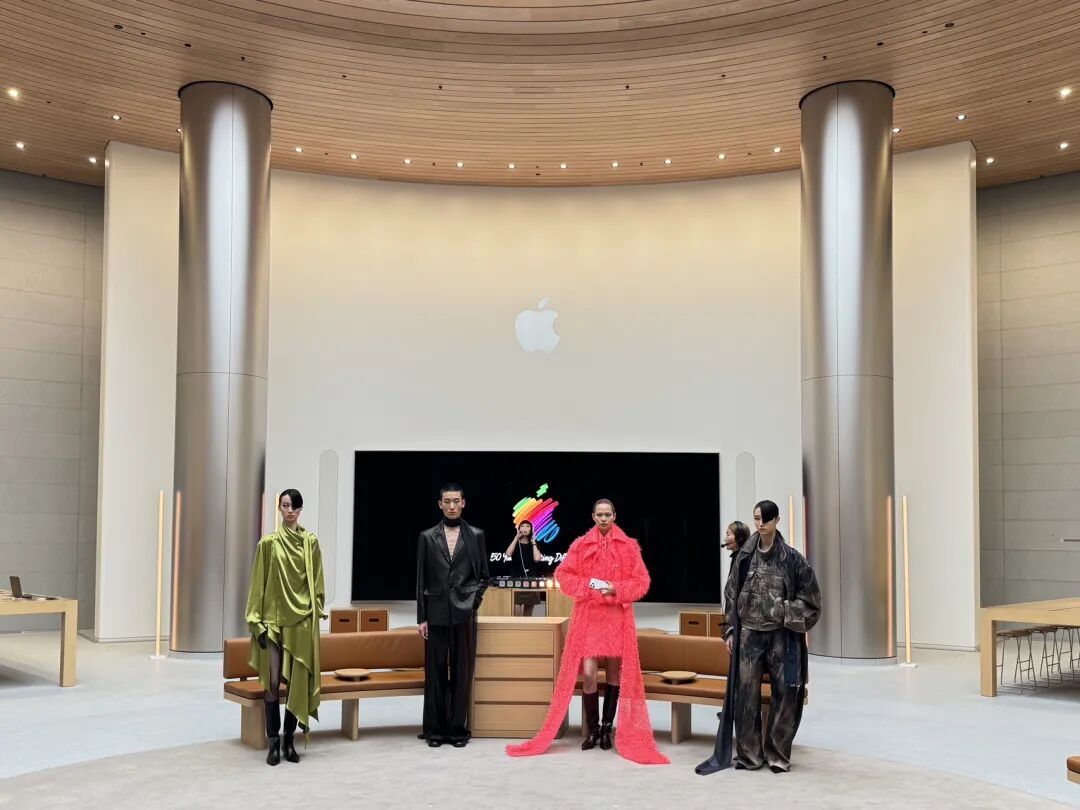 ,致敬半个世纪以来的非凡思考与锐意创新,赞颂全球用户借助Apple技术实现的非凡创造和深刻影响。在本次上海场庆祝活动中,Apple静安前的圆形广场限时变身时尚秀场,构筑圆形T台,呈现Feng Chen Wang 2026秋冬系列发布大秀。这也是Feng Chen Wang品牌成立10年来首次回国举办独立大秀。
