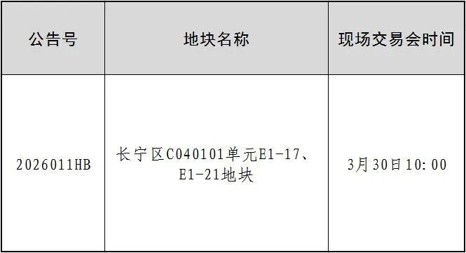 根据《上海市国有建设用地使用权出让沪告字[2026]第011号公告》的规定,现确定该公告现场交易活动安排如下: