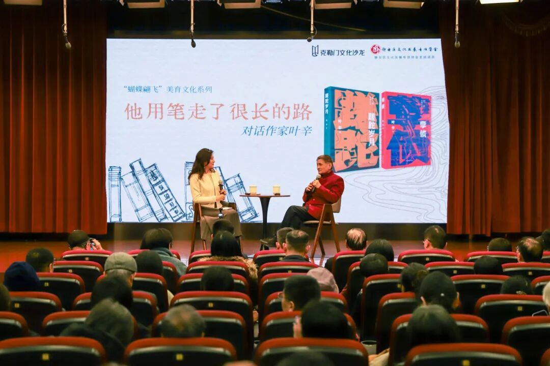 近日,石门二路街道与“克勒门”文化沙龙携手打造的“蝴蝶翩飞”美育文化系列活动,在苏州河畔蝴蝶湾党群服务中心开启今年首场“蝴蝶讲堂”。中国作家、编剧、首届全国五一劳动奖章得主,中国作家协会副主席(1996—2021)叶辛受邀主讲,与“克勒门”创始人阎华展开深度对谈,不同年龄段的读者围坐一堂,在两位对谈人的娓娓道来中,回望城市文学记忆,畅谈创作与时代、生活的深刻联结。