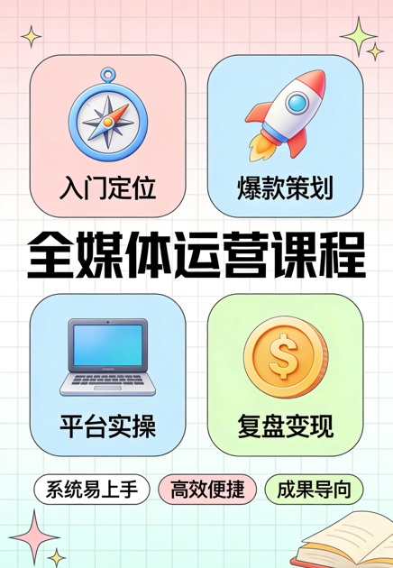 想摆脱运营新手困境?想轻松掌握爆款策划与流量密码? 专为青年新手打造的系统课程,课程循序渐进,从入门到变现手把手教学,轻松解锁全媒体运营技能!