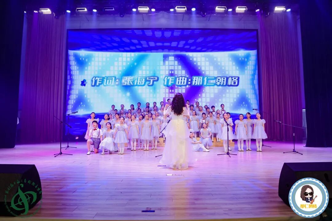 舞台上,来自闵行区莘松中学“莘之声”少年合唱团、复旦闵行实验学校“幸福合唱团”、上海心梦家园舞蹈艺术团以及淮南市少儿艺术协会选送的“鹿梦童声合唱团”等优秀团体倾情加盟。孩子们用清澈的嗓音,将那仁朝格作品中蕴含的纯真生活与美好向往演绎得淋漓尽致。