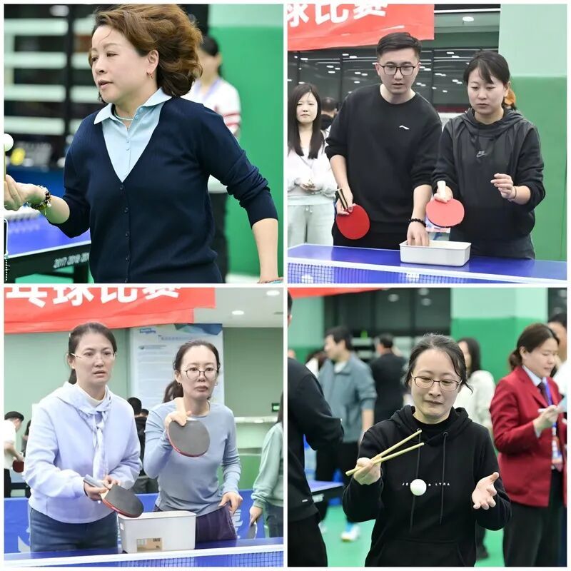 中午的趣味赛环节设置蛋板停球、竹筷运球两个项目,突出协作与乐趣,整体氛围轻松欢乐又不失热烈。参赛职工们默契配合,现场欢声笑语不断,不仅有效拉近不同单位和部门职工间的距离,更让平日里专注工作的老师们卸下疲惫,放松身心,充分感受集体活动的温暖与乐趣。
