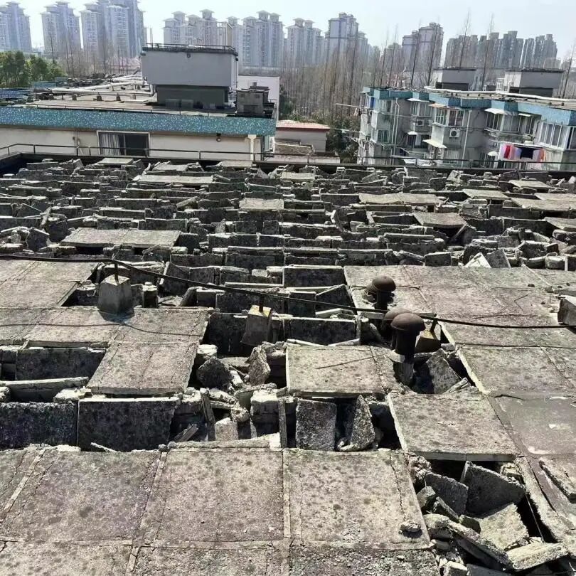 工程开工后,党总支牵头建立“每日巡查、每周沟通、全程监督”机制,严把工程质量关。工作组每日巡查现场,业委会核对施工材料和工艺,确保维修基金用在实处;物业专人驻守,协调施工与居民生活矛盾,及时清运垃圾、做好安全防护;施工单位规范作业,尽量降低对居民生活的影响。 施工期间,针对居民提出的管道优化建议,党总支第一时间牵头召开协调会,联合施工方、业委会、物业现场调整方案,让工程更贴合居民需求。在“三驾马车”协同发力、多方共同监督下,屋顶修缮及配套管网改造工程稳步推进,老旧屋顶重新铺设防水层、修复屋面裂缝,老化堵塞的下水管完成更换,破损污水管实现疏通修复,彻底解决了小区多年的渗漏、堵塞难题。 整改前屋顶严重老化破损