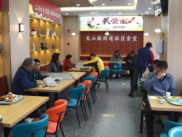 中午时分,“宁宁”在天山路街道社区食堂看到,重新开业的食堂以原木色、米白、浅灰等中性色为基调,搭配少量暖黄色,整体空间布局更加开阔。