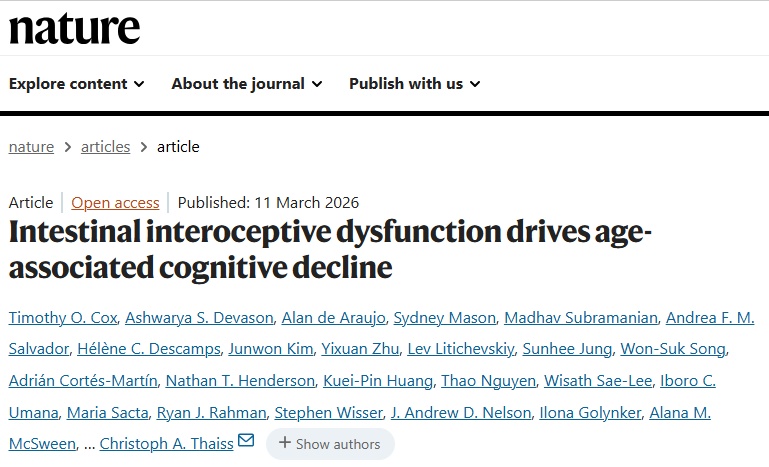 这项研究打破了“认知衰退源于大脑老化”的固有认知,证明肠道与大脑的“通讯中断”同样是年龄相关记忆减退的关键推手。