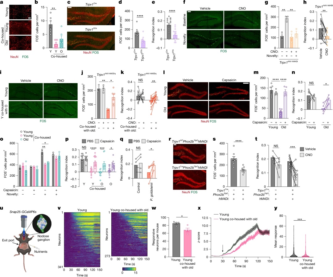 关键突破在于迷走神经的作用。表达TRPV1和PHOX2B的迷走神经感觉神经元是连接肠道与大脑的关键桥梁。研究人员通过化学遗传学方法激活这些神经元,或给予低剂量辣椒素刺激,可以完全恢复年轻小鼠的海马体活性和认知功能。同样,给予胆囊收缩素或GLP-1等肠道激素也能达到类似效果。