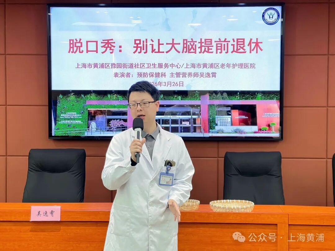 当天,首场公益讲座在市退大豫园社卫分校同步开讲。豫园社卫营养师吴逸霄的《别让大脑提前退休》科普脱口秀以轻松诙谐、贴近大众的趣味表达预热开场,从常见生活场景切入,打破“老年痴呆是老年人专属”的认知,科普阿尔茨海默病的相关知识,强调其虽无法治愈但可早识别早干预的重要性,同时分享护脑健脑食谱推荐。