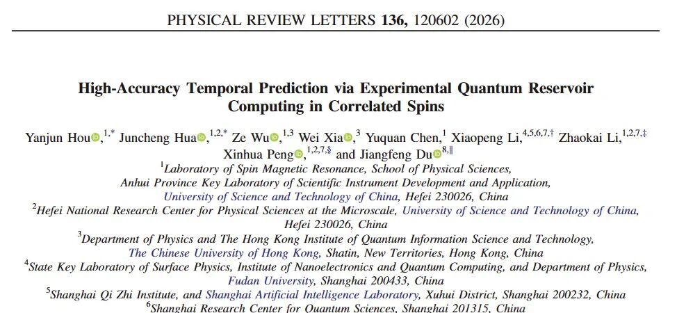 相关研究成果已发表于《物理评论快报》(PRL)。这项研究不仅将时序预测任务的误差降低了1至2个数量级,即约10倍到100倍,达到当前量子储层计算的先进水平。更是首次在实验系统中验证了量子机器学习在解决实际问题时能够超越大尺度经典模型。