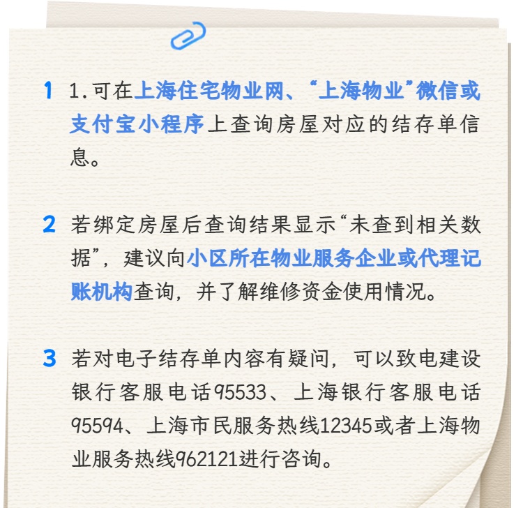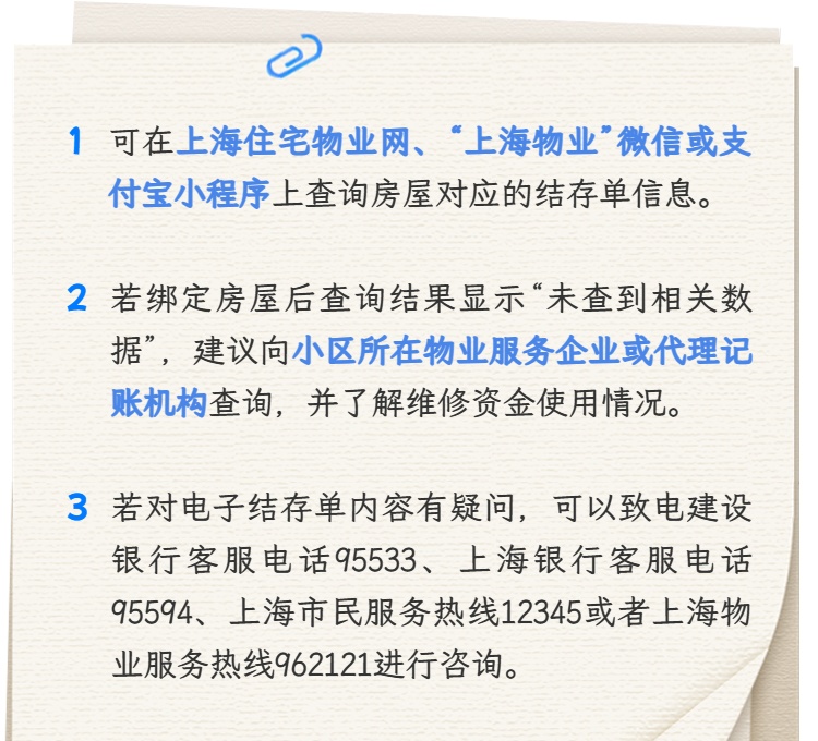 如您对2025年度商品住宅维修资金电子结存单内容有疑问,可以致电建设银行客服电话95533、上海银行客服电话95594、上海市民服务热线12345或者上海物业服务热线962121进行咨询。