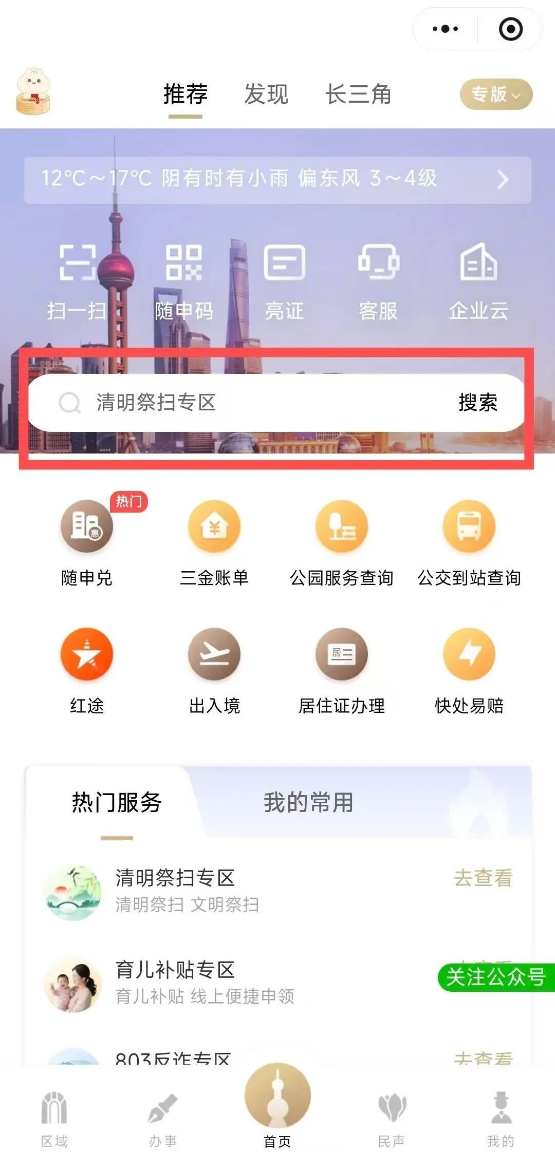 在随申办内有一个实用服务