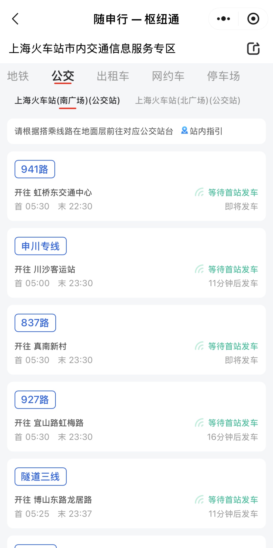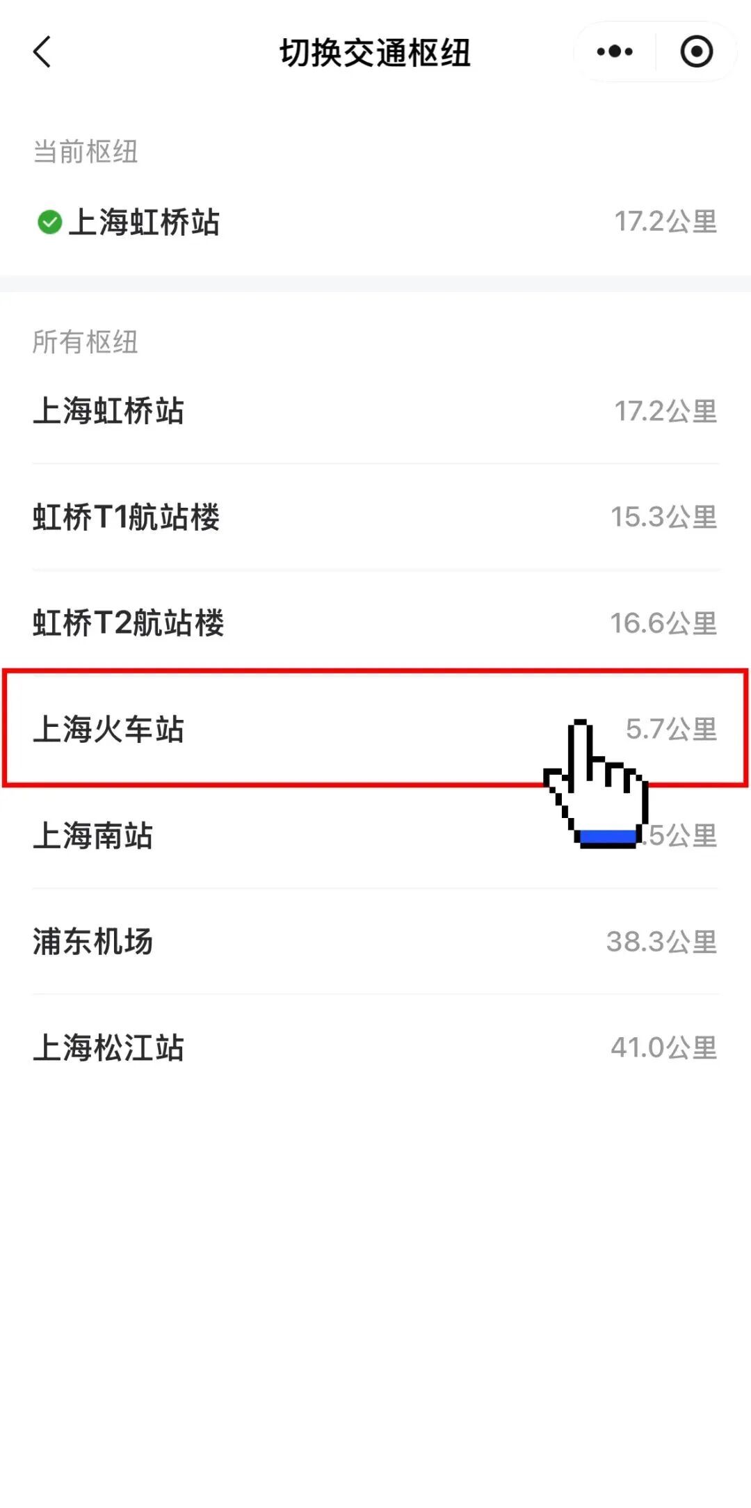 进入专区后,在界面上可以看到左上角的选站按钮,点开选站按钮即可看到上海的各大站点,选择「上海火车站」即可。