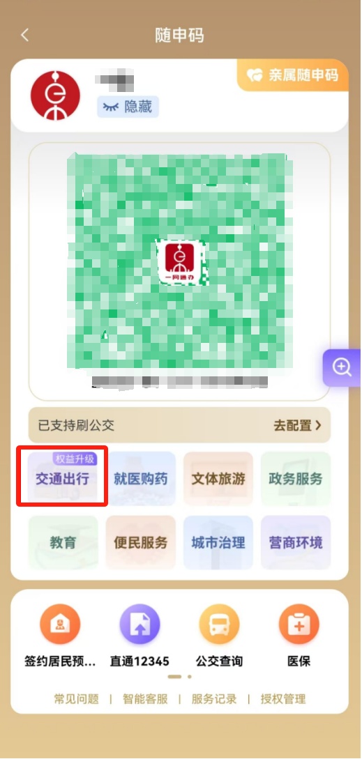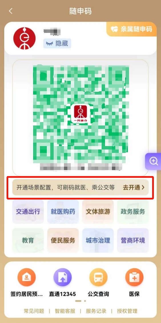 打开“随申办市民云”(APP/微信小程序/支付宝小程序),首页点击“随申码”,开通交通场景配置,完成签约,即可使用。全市地铁、公交、轮渡“一码通行”。