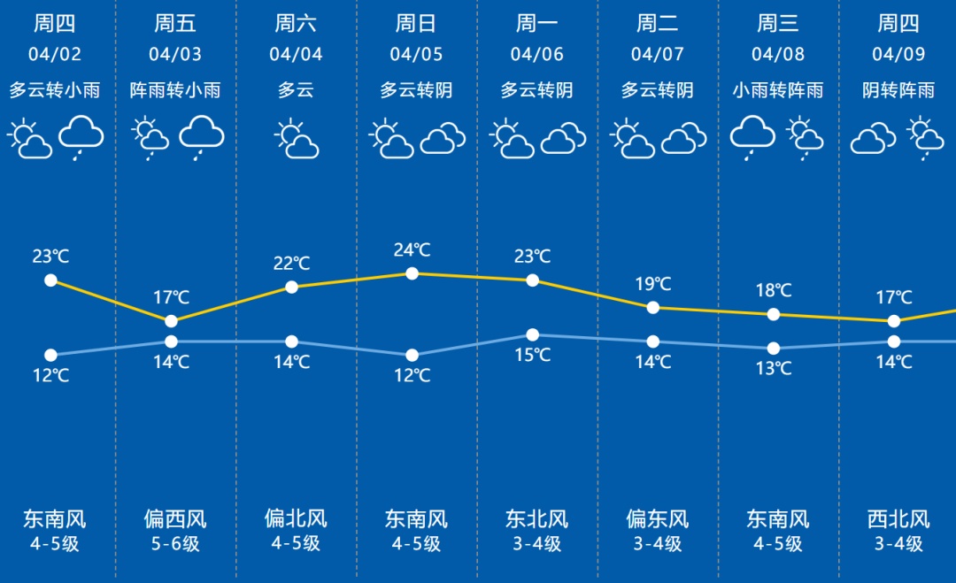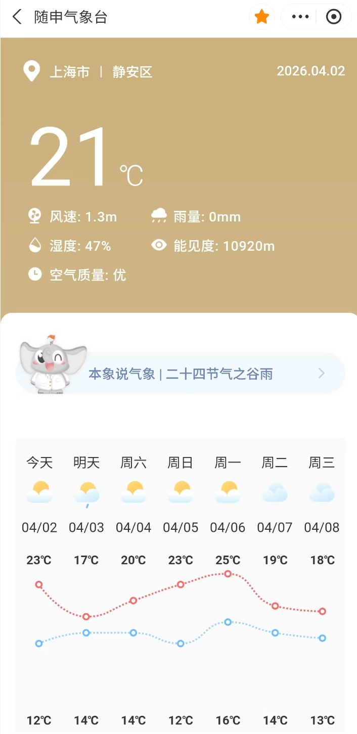 春季天气系统活跃、晴雨转换快,记得及时关注最新的预报信息,打开“随申办市民云”(APP/微信小程序/支付宝小程序),首页搜索进入“随申气象台”服务,快速了解一周天气情况,提前做好出行计划。