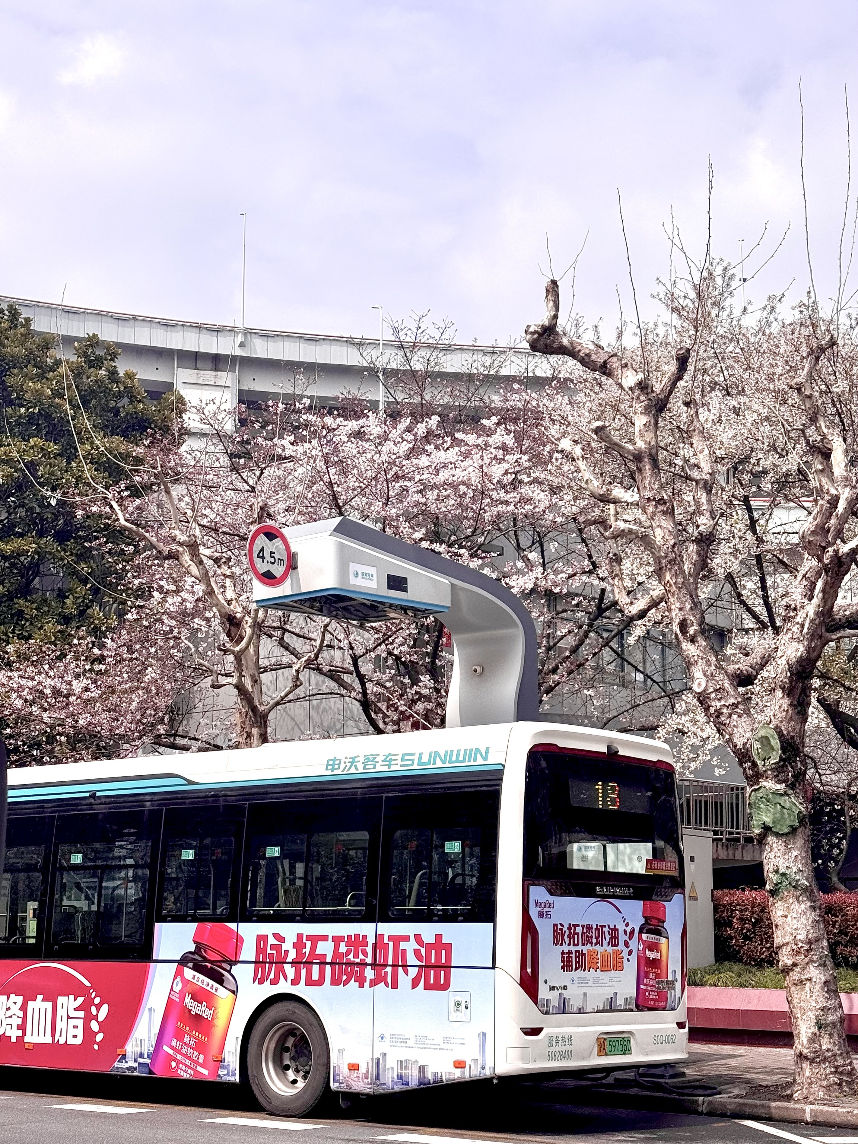 在上海,春天常常隐匿于不经意的街角,而18路公交宛如一条穿梭于春日画卷中的专线,一头连着南浦大桥的热闹樱花盛景,一头牵着东江湾路同心路的温柔花境,让通勤路上的乘客也能将春天轻松“揣进怀里”。