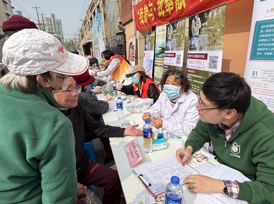 各摊位前人潮涌动。健康义诊处,测血糖、量血压项目前排起长队,中医问诊与牙科咨询同样热闹,医护人员耐心地为老人检查健康状况,并给出个性化的养生建议;居家养老服务、辅具租赁、长护险消费券等咨询台前,工作人员热情地为围拢过来的老年居民答疑解惑,从日常照料到紧急援助,从长护险申领条件到消费券使用范围,帮助老人算清“养老账”,让大家对未来的养老生活更添一份踏实与保障。
