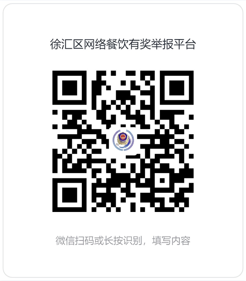 为进一步加强徐汇区网络餐饮食品安全治理,鼓励全社会共同参与监督,及时发现和有效控制网络餐饮食品安全风险隐患,区市场监管局自即日起,在全区范围内征集网络餐饮食品安全违法行为线索。 举报范围 在徐汇区从事网络餐饮经营的以下违法行为: (一)证照地址不一致 平台线上公示地址或实际经营地址与食品经营许可地址不一致、网络餐饮经营者伪造涂改证照、借用或冒用他人证照、“幽灵外卖”等问题线索。 (二)无证经营 无《营业执照》《食品经营许可证》或《小餐饮临时备案》从事网络餐饮服务,《食品经营许可证》或《小餐饮临时备案》未在有效期内从事网络餐饮服务等问题线索。 奖励标准 对征集到涉及网络餐饮的无证经营、“幽灵外卖”违法线索,经查属实并予以行政处罚的,给予举报人最高300元奖励。 奖励条件 网络餐饮食品安全举报奖励,应当同时符合下列条件: (一)所举报的食品安全违法行为发生在本区行政区域内。 (二)举报人实名举报或者区市场监管局能够核实举报人有效身份的隐名举报。 (三)有明确、具体的被举报对象和主要违法犯罪事实或者违法行为线索。 (四)违法行为或者线索事先未被区市场监管局掌握。 (五)同一举报内容未获得其他奖励。 (六)举报情况经区市场监管局调查,查证属实。 奖励原则 对举报人员的奖励,实行一案一奖制,依据以下原则确定奖励范围与金额: (一)对同一举报事项,不得重复予以奖励。同一违法行为被不同举报人举报且内容相同的,对第一举报人进行举报奖励,举报顺序以举报人向区市场监管局举报时间为准。 (二)一个举报中所涉及的违法行为,区市场监管局予以分案查处的,可以分别计算奖励金额,奖金可以合并发放。 (三)最终认定的违法事实与举报事项部分一致的,相一致的部分为有效举报,不一致的部分为无效举报,无效部分不计算奖励金额。 (四)最终认定的违法事实与举报事项不一致的,不予奖励。 (五)同时符合本办法和《上海市食品安全举报奖励办法》奖励范围的,选择更有利于举报人的办法予以奖励。 举报方式 1.电话受理:12315、12345。 2.网络渠道:登录全国12315互联网平台(网址:http://www.12315.cn),或者通过微信、支付宝小程序搜索12315。 3.扫码举报: 举报要求与权益保障 1.举报要求。举报人应尽可能提供详细、准确的线索信息,包括违法行为发生的时间、具体地点、违规情形、相关证据(如照片、截图、视频等)以及可能违法的人员等信息,以便于高效核查处理。 2.真实性责任。举报内容必须客观真实。对故意捏造事实、诬告陷害他人的,将依法追究其法律责任。 3.信息保密。区市场监管局将对举报人的个人信息(姓名、身份、住址、联系方式等)严格保密,未经举报人本人同意,任何单位和个人不得泄露举报人信息。 4.安全保障。对打击报复举报人的行为,一经查实,将依法移送公安机关予以从严惩处,切实保障举报人的人身和财产安全。 施行日期与有效期 即日起至2026年12月31日止。 徐汇区市场监督管理局 2026年4月1日