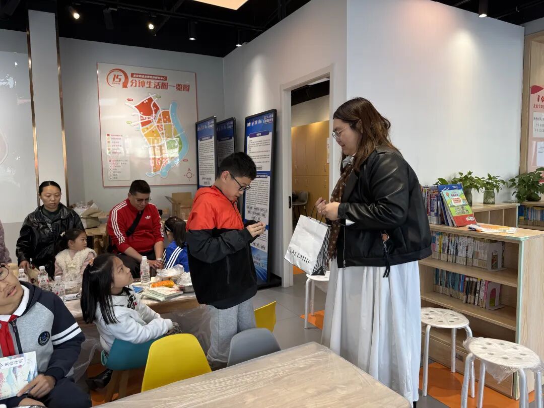 在“诗词接龙”环节,现场气氛迅速升温。工作人员“井鲤姐姐”准备了一只装满彩色小球的抽取袋,孩子们依次上前,满怀期待地取出小球。每个球内藏有一句与春天或清明相关的古诗词,孩子们需接出上句或下句。诗词或描绘春日生机,或寄托追思情怀,大家在游戏中巩固所学,也慢慢感受到中华传统文化的韵味与魅力。