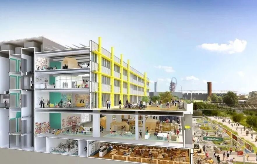 伊丽莎白女王奥林匹克公园:以奥运遗产和生态资源为基础,通过智能化、可持续基础设施升级,构建新一代创新生态系统。图中Here East从奥运会临时媒体中心改造为多功能创新园区。