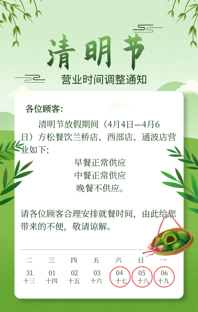方松街道社区事务受理服务中心清明节期间具体对外服务时间为: